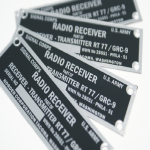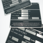 We can manufacture nameplates and data plates in plastics or metals. Depending on your requirements we are able to use processes of ano printing and chemical etching for bulk quantities. Often, our customers will have a quantity of standard non variable nameplates manufactured, kept in stock and then have variable data engraved to these as and when the nameplate is needed.